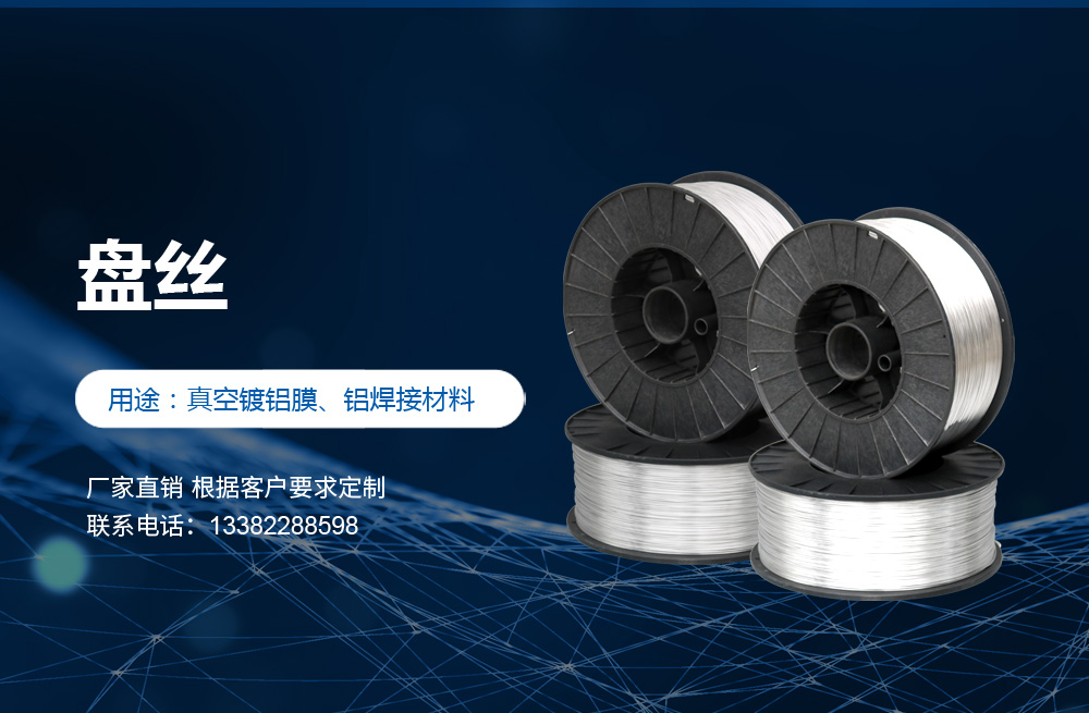 高純度鋁絲:公司主打產品。SGS認證產品,適用于真空鍍鋁。純度99.9%??蔀榭蛻袅可矶ㄗ錾a的各盤裝鋁絲。產品應用領域十分廣泛,如:真空鍍鋁膜、電器儀表、電子、家電業、電線電纜業、建筑裝飾業、五金裝飾業、IT電腦業、廣告裝飾業、醫療器械、工藝制品、防腐制品(大型港口、橋梁、碼頭)、食品包裝容器、紡織服裝等。
